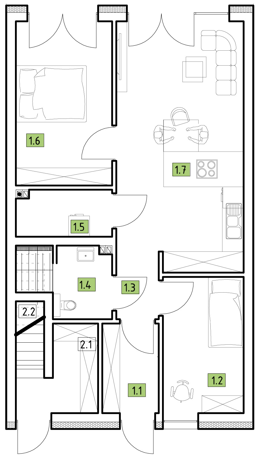1.7. | Salon + kuchnia | 24,99 m2 |